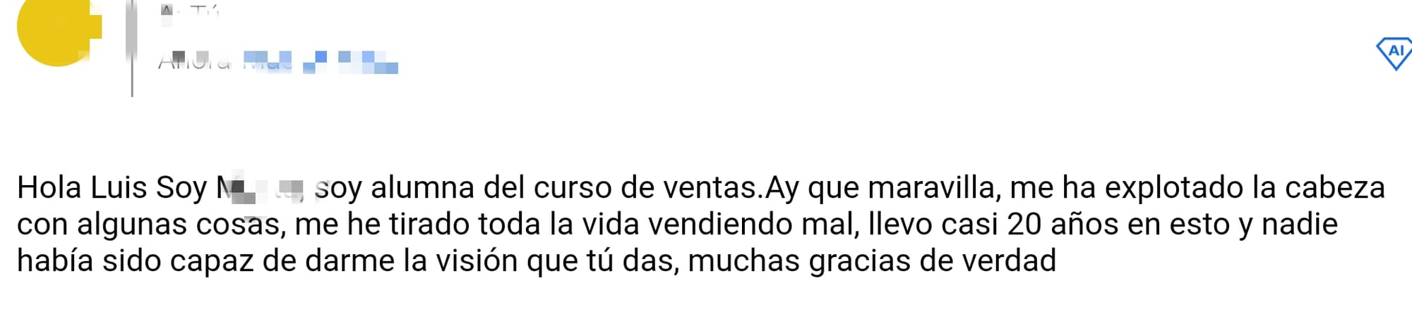 Mira lo que me pone esta alumna que compró el curso de ventas: