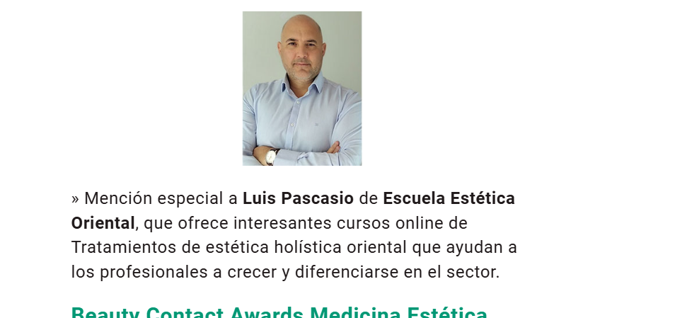 En el pasado evento de los BEAUTY CONTACT AWARDS (creo que se escribe así) que se celebró en el Parador de Málaga, galardonaron a la Escuela de estética oriental y no pude asistir.